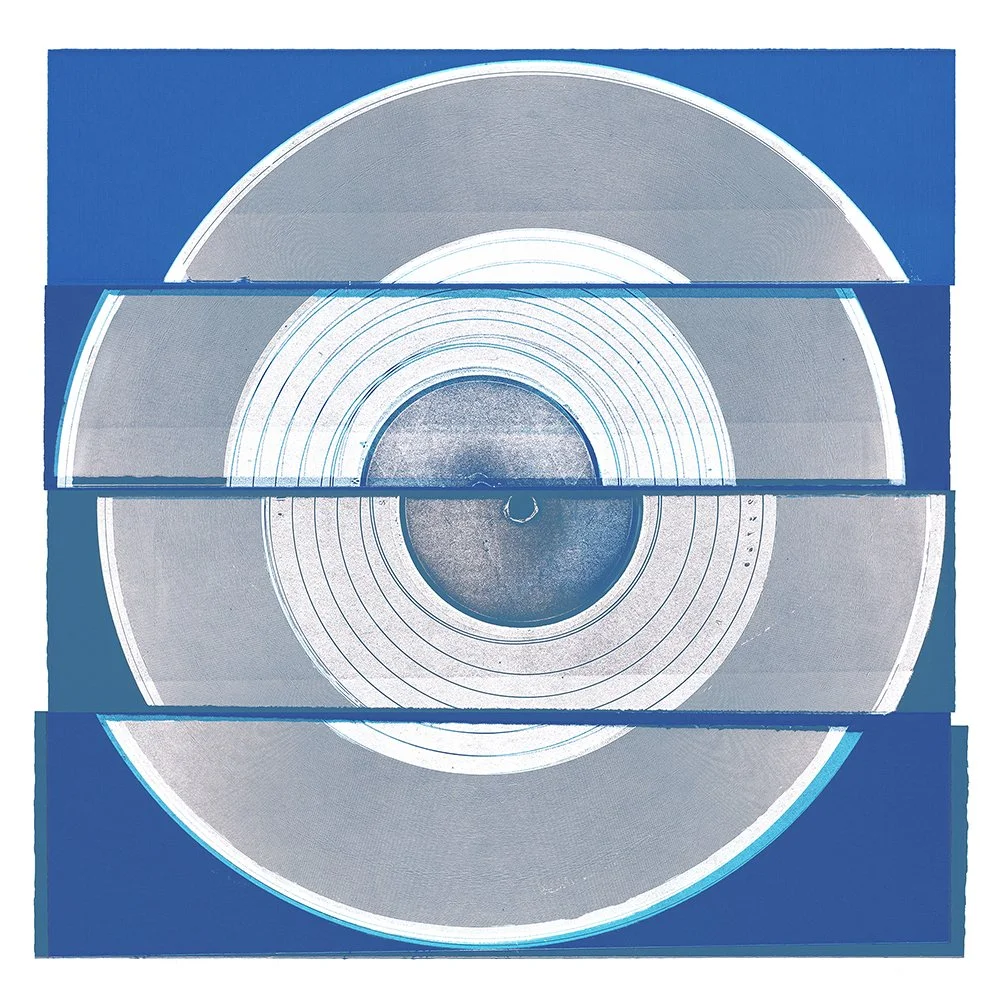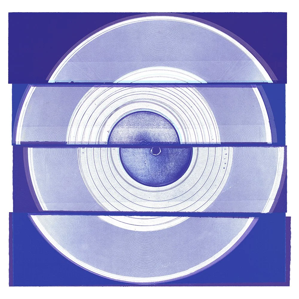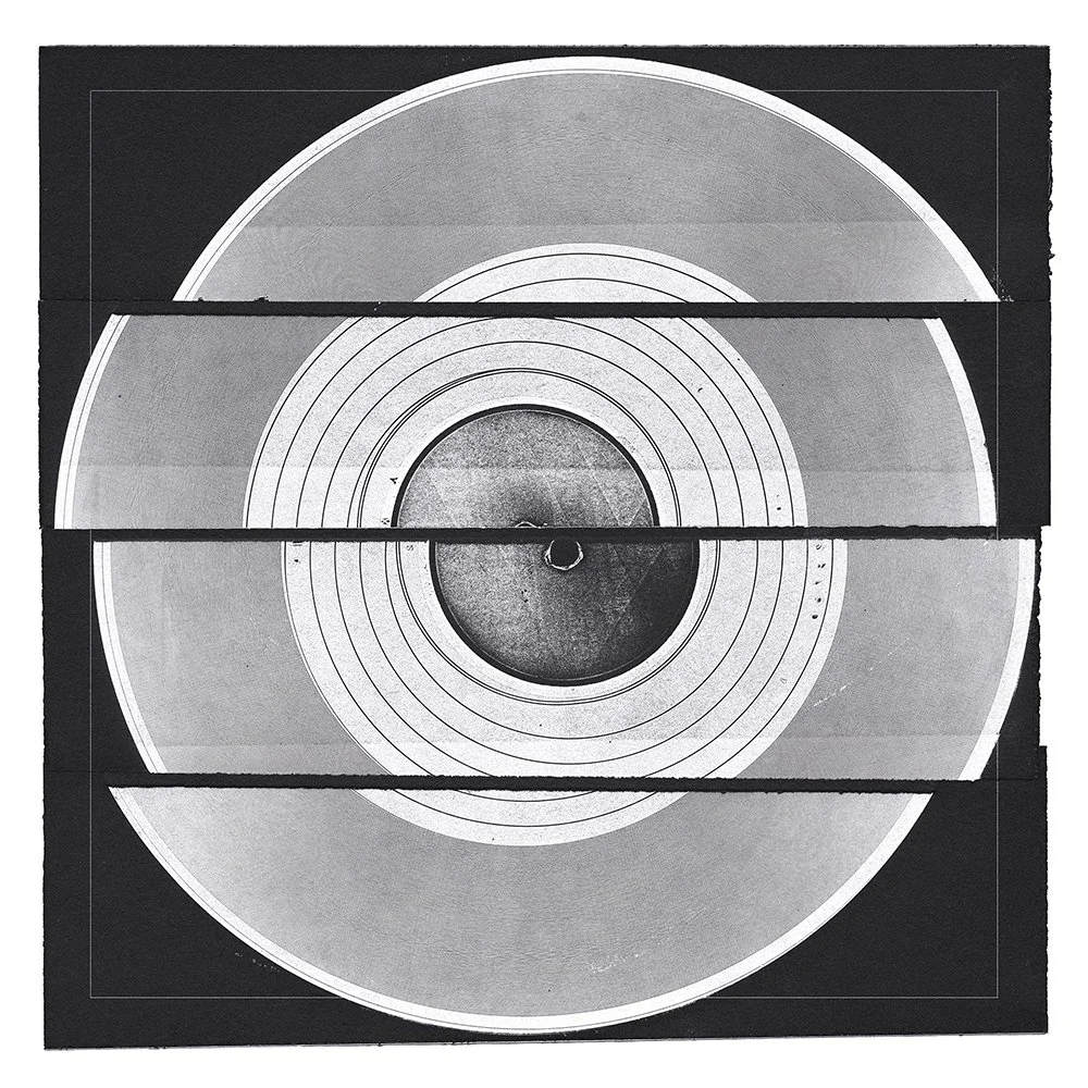 The following giclée prints are part of a series created by covering old vinyl records in ink and running them through my etching press while listening to music at very high volumes.